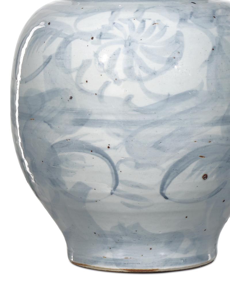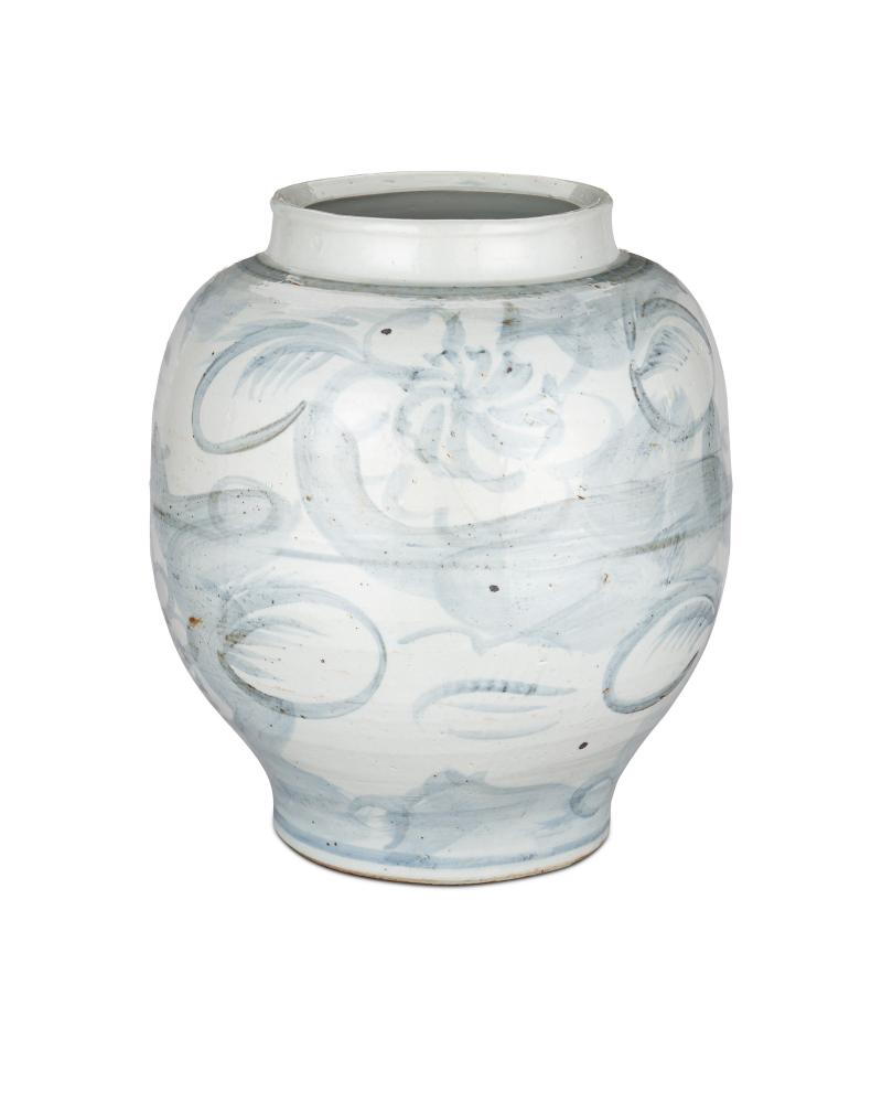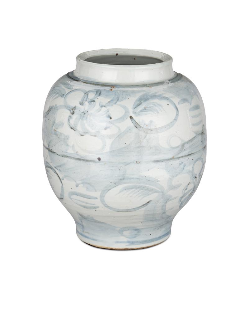 Modern interpretations of the tradition of Chinoiserie that dates back to the great dynasties in Asia, the Ming-Style Countryside Large Preserve Pot is made of porcelain. The design tells its "story" in pale blue motifs on an off-white ground. Because these are artisanal pieces handmade by families with generations of expertise, the color and pattern may vary slightly.