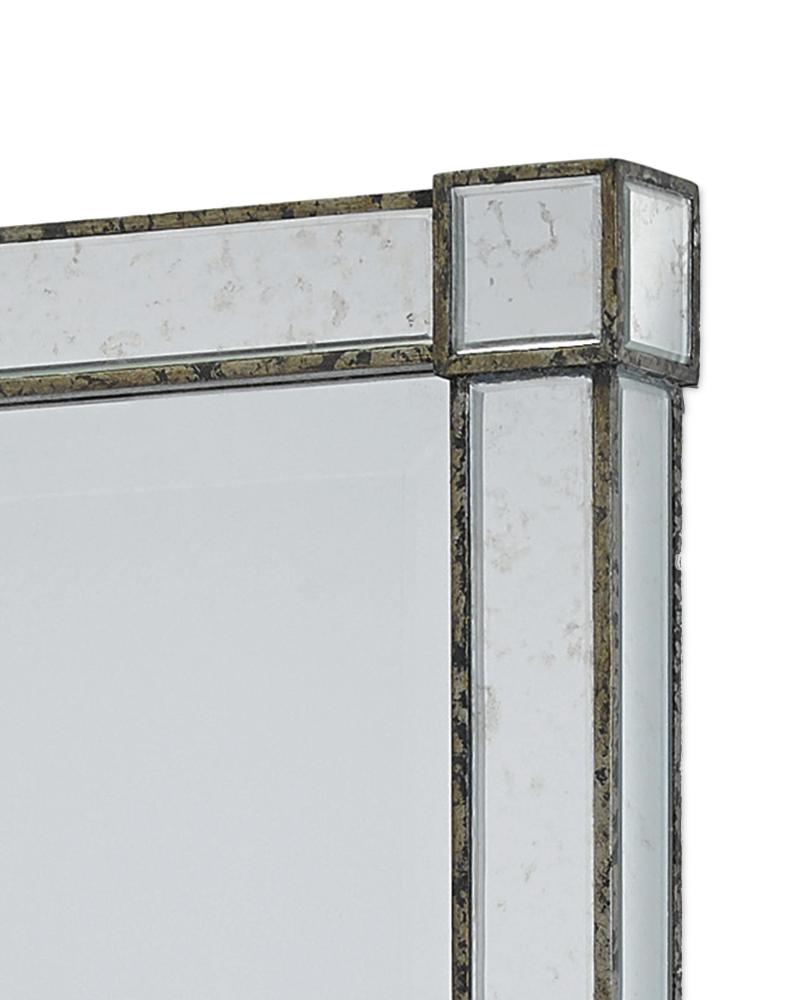 Echoing the masterful adeptness that Venetian glassmakers achieved when they turned their attention to furniture, the Monarch Rectangular Mirror is made of antique mirrored pieces that have been hand-cut, beveled, and affixed to this clean-lined design in a mix of light antique mirror and silver Viejo finishes. The silver mirror can be hung vertically or horizontally.