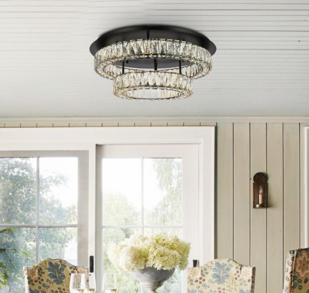 Diamonds are a girl’s best friend, and sparkling Monroe collection hanging fixtures take Marilyn’s famous lines to heart … for women and men alike. A minimal stainless-steel frame becomes dazzling when it is covered entirely with rectangular and square spectacularly faceted clear crystals. The oblong design hangs from almost invisible wires with brilliant integrated LED shining unseen from within. Stunning when placed in a dining room, kitchen, living room, or bedroom.