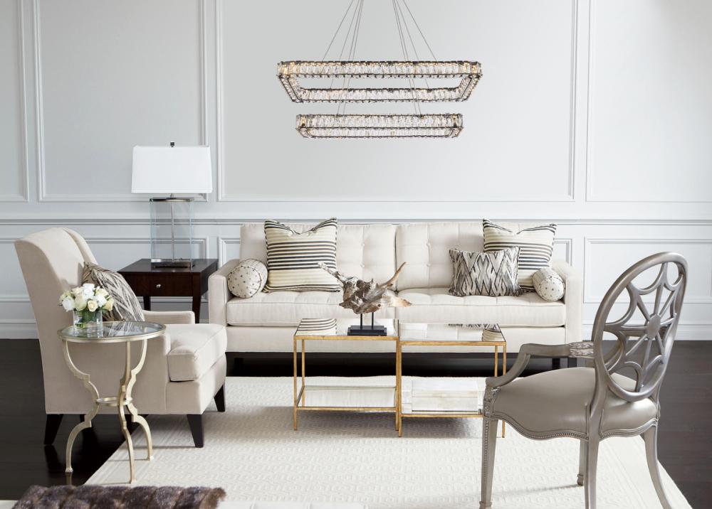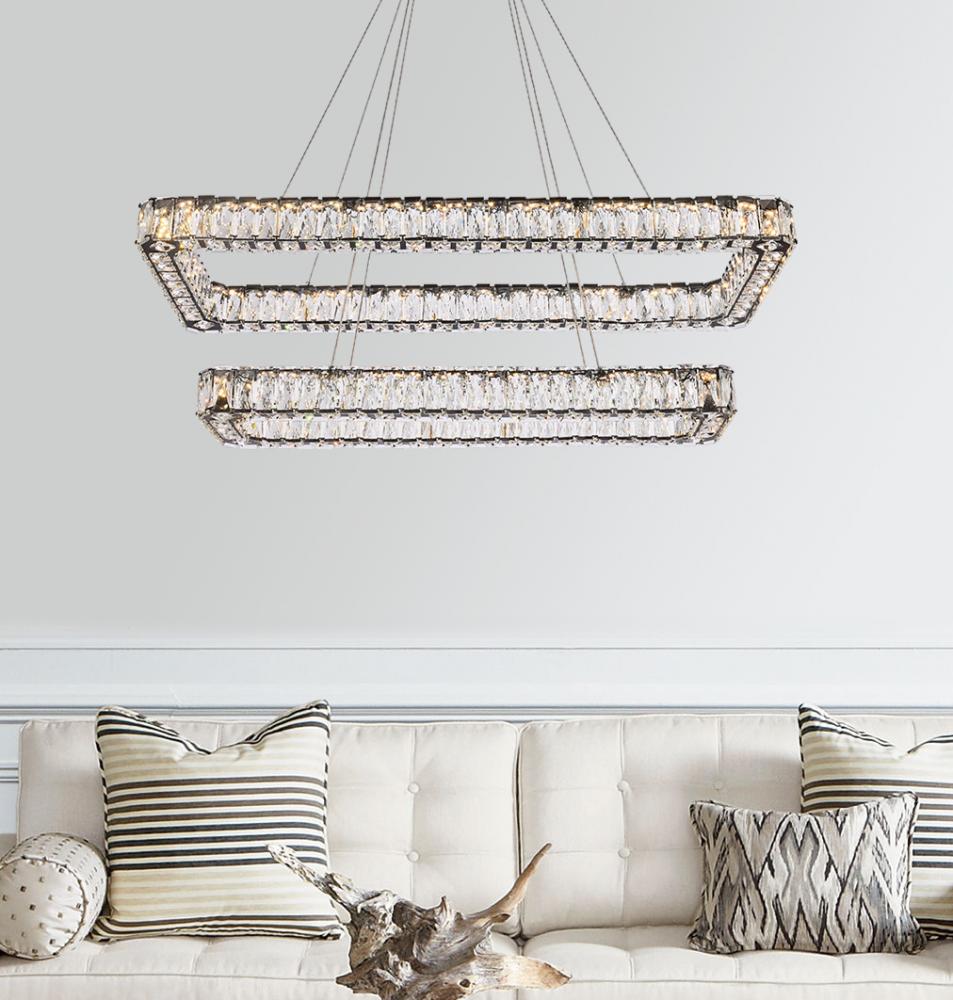 Diamonds are a girl’s best friend, and sparkling Monroe collection hanging fixtures take Marilyn’s famous lines to heart … for women and men alike. A minimal stainless-steel frame becomes dazzling when it is covered entirely with rectangular and square spectacularly faceted clear crystals. The oblong design hangs from almost invisible wires with brilliant integrated LED shining unseen from within. Stunning when placed in a dining room, kitchen, living room, or bedroom.