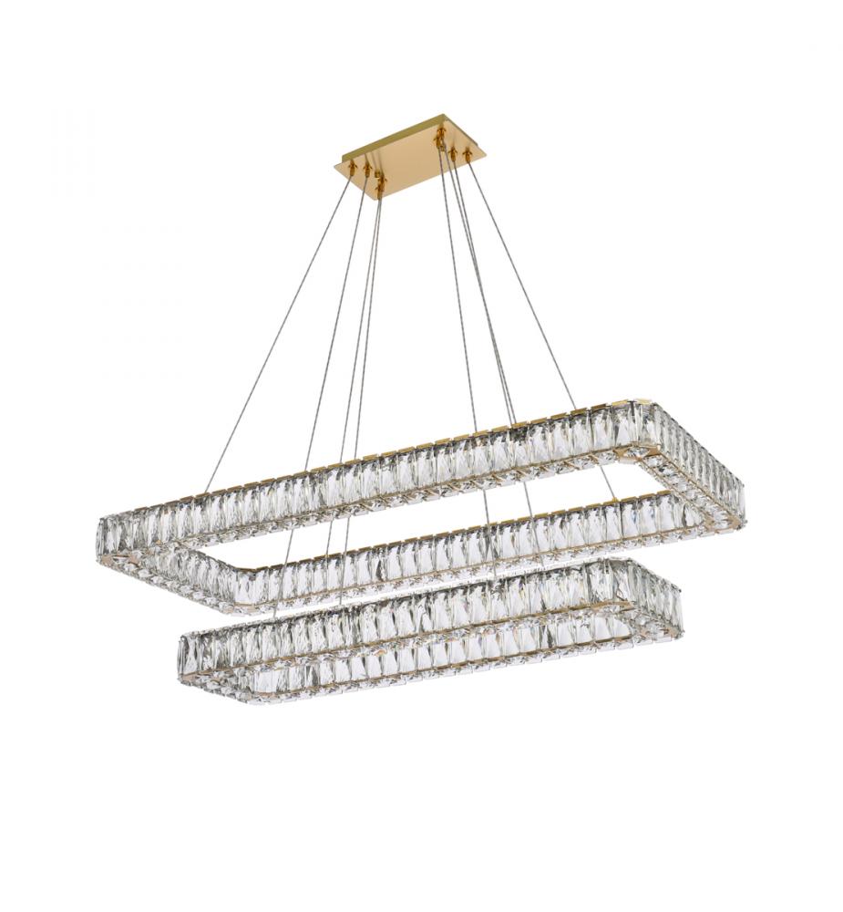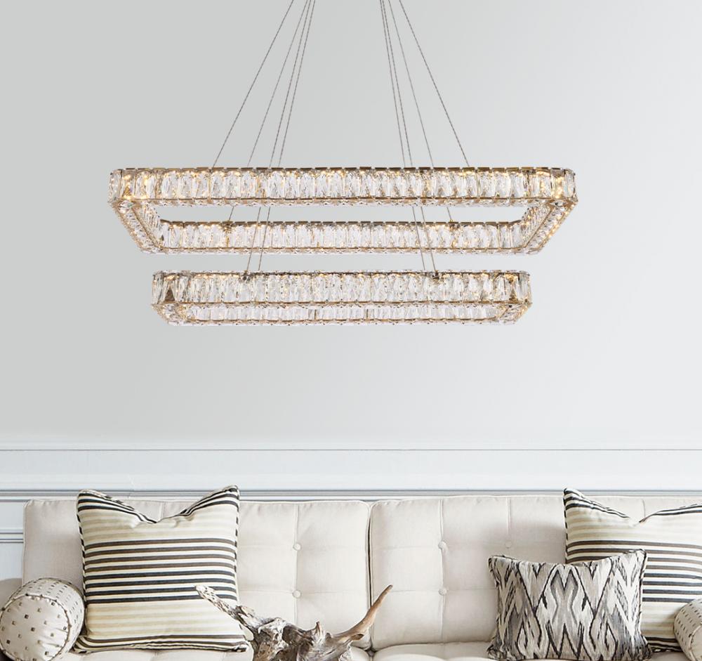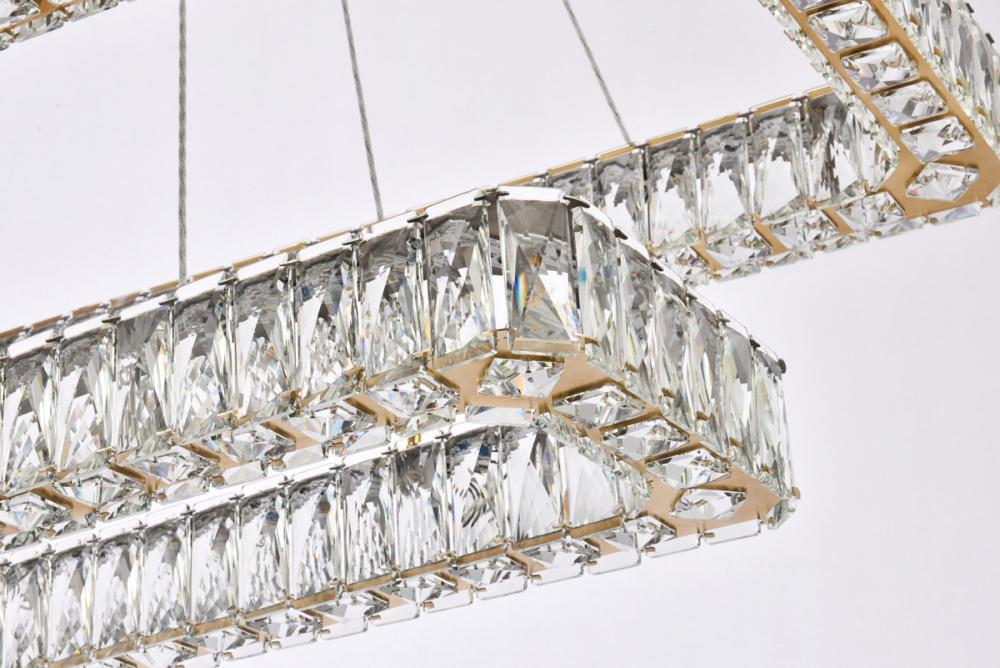 Diamonds are a girl’s best friend, and sparkling Monroe collection hanging fixtures take Marilyn’s famous lines to heart … for women and men alike. A minimal stainless-steel frame becomes dazzling when it is covered entirely with rectangular and square spectacularly faceted clear crystals. The oblong design hangs from almost invisible wires with brilliant integrated LED shining unseen from within. Stunning when placed in a dining room, kitchen, living room, or bedroom.