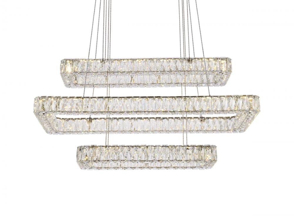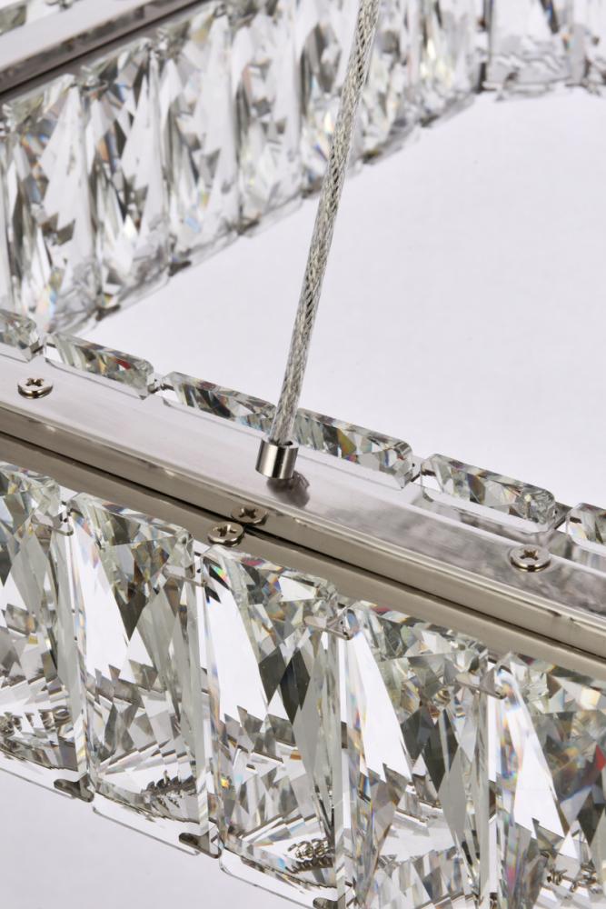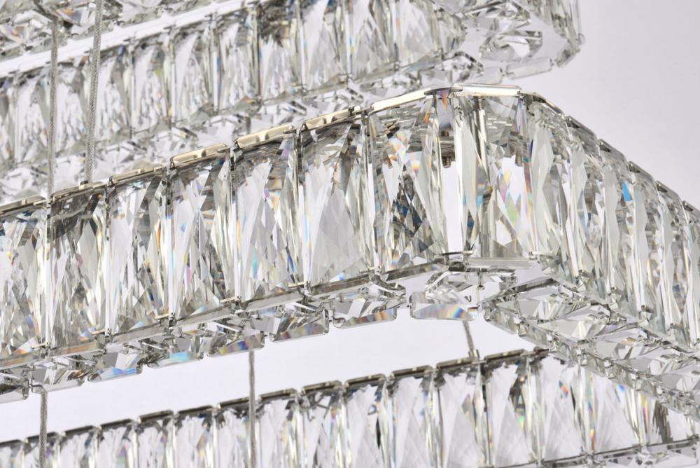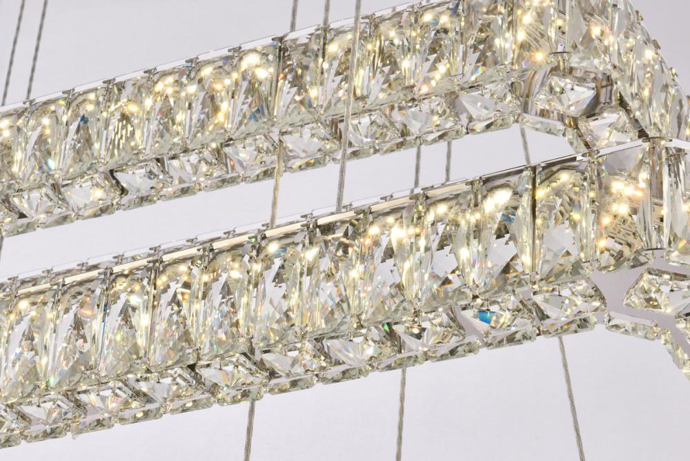 Diamonds are a girl’s best friend, and sparkling Monroe collection hanging fixtures take Marilyn’s famous lines to heart … for women and men alike. A minimal stainless-steel frame becomes dazzling when it is covered entirely with rectangular and square spectacularly faceted clear crystals. The oblong design hangs from almost invisible wires with brilliant integrated LED shining unseen from within. Stunning when placed in a dining room, kitchen, living room, or bedroom.