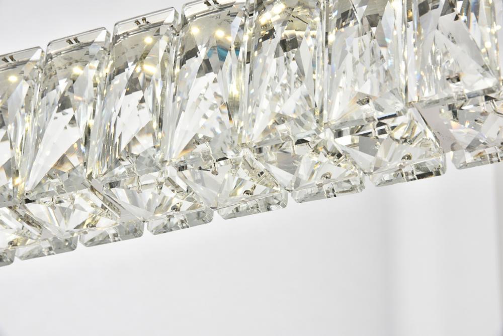 Diamonds are a girl’s best friend, and sparkling Monroe collection hanging fixtures take Marilyn’s famous lines to heart … for women and men alike. A minimal stainless-steel frame in a smooth chrome finish becomes dazzling when it is covered entirely with rectangular and square spectacularly faceted royal-cut clear crystals. The oblong design hangs from almost invisible wires with brilliant integrated LED shining unseen from within. Stunning when placed in a dining room, kitchen, living room, or bedroom.