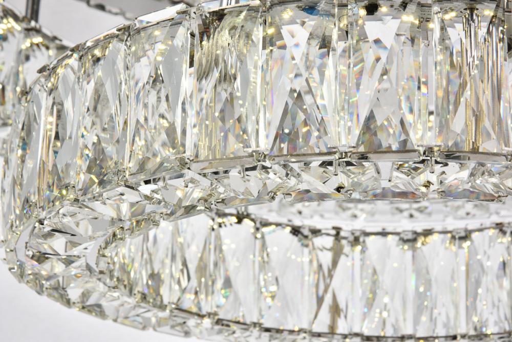 Diamonds are a girl’s best friend, and sparkling Monroe collection flush-mount lamps take Marilyn’s famous lines to heart … for women and men alike. Two tiers of minimal stainless-steel rings in a smooth chrome finish become dazzling when they are covered with rectangular and square spectacularly faceted royal-cut clear crystals. Brilliant integrated LED shine unseen from within, while the highly polished mounting fixture only increases the intensity of the light. Stunning when placed in a dining room, foyer, living room, or bedroom.