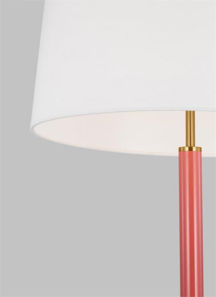 Inspired by graphic enameled metal jewelry and decorative accessories from Kate Spade with a nod to late 50s atomic era colorful designs. Monroe exhibits clean lighting profiles and dressed them up with painted sections and metal accents. With chic finishes and burnished brass accents, the Monroe table lamp is a precise picture of refined minimalist design with a modern twist. Ideal for a bedroom, living room, den, or playroom, this table lamp mount adds the perfect pop of color while illuminating your home with style.