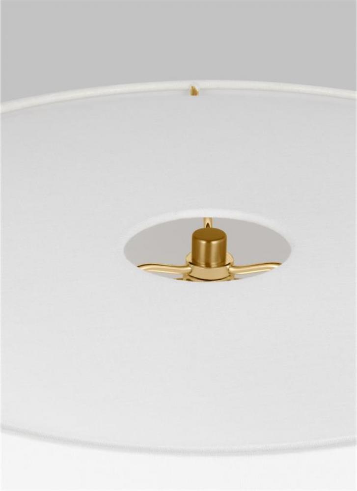 Features metal accents and a fabric white linen shade
