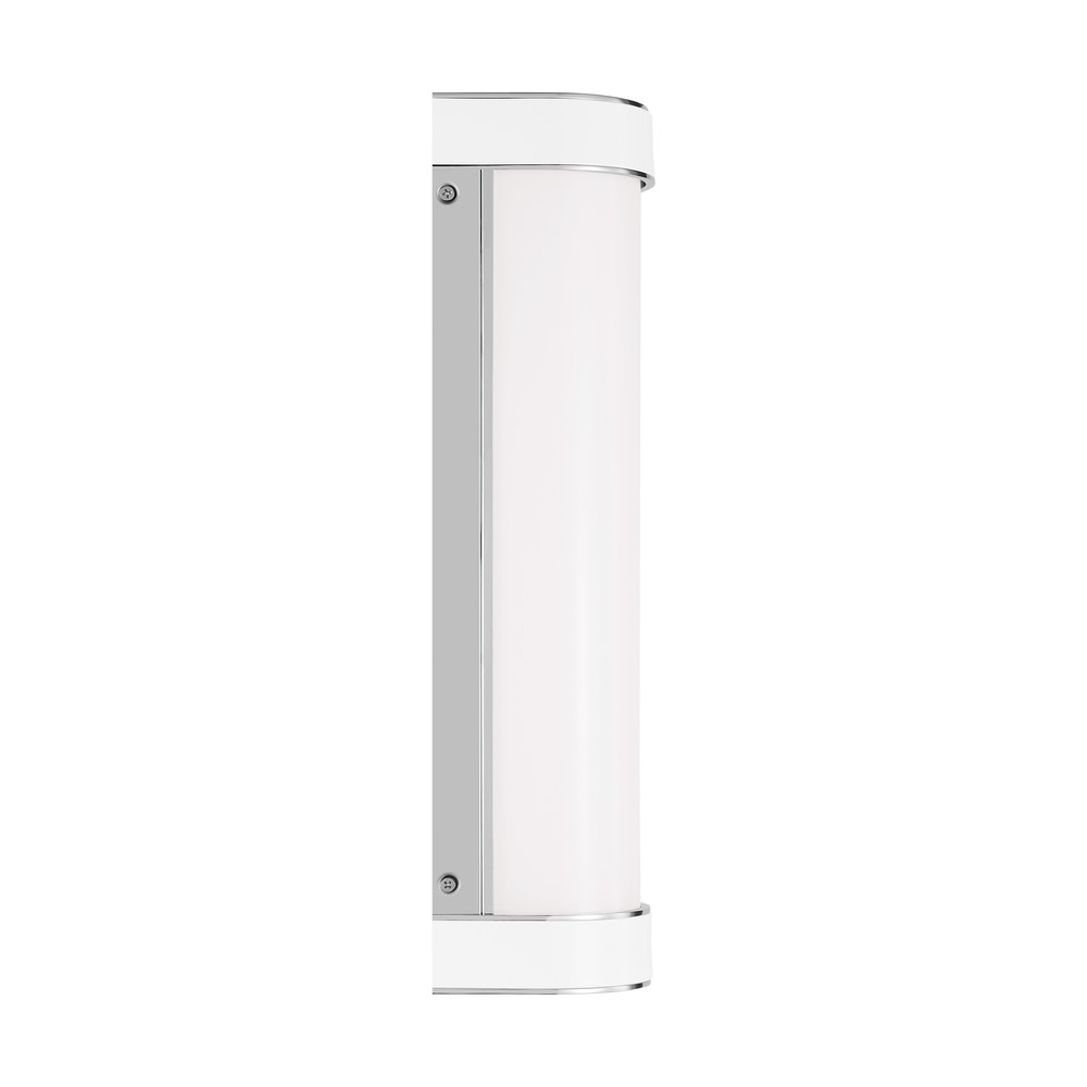 Mid-century modern fixture is damp rated and will complement a bathroom, bedroom, entry room or hallway