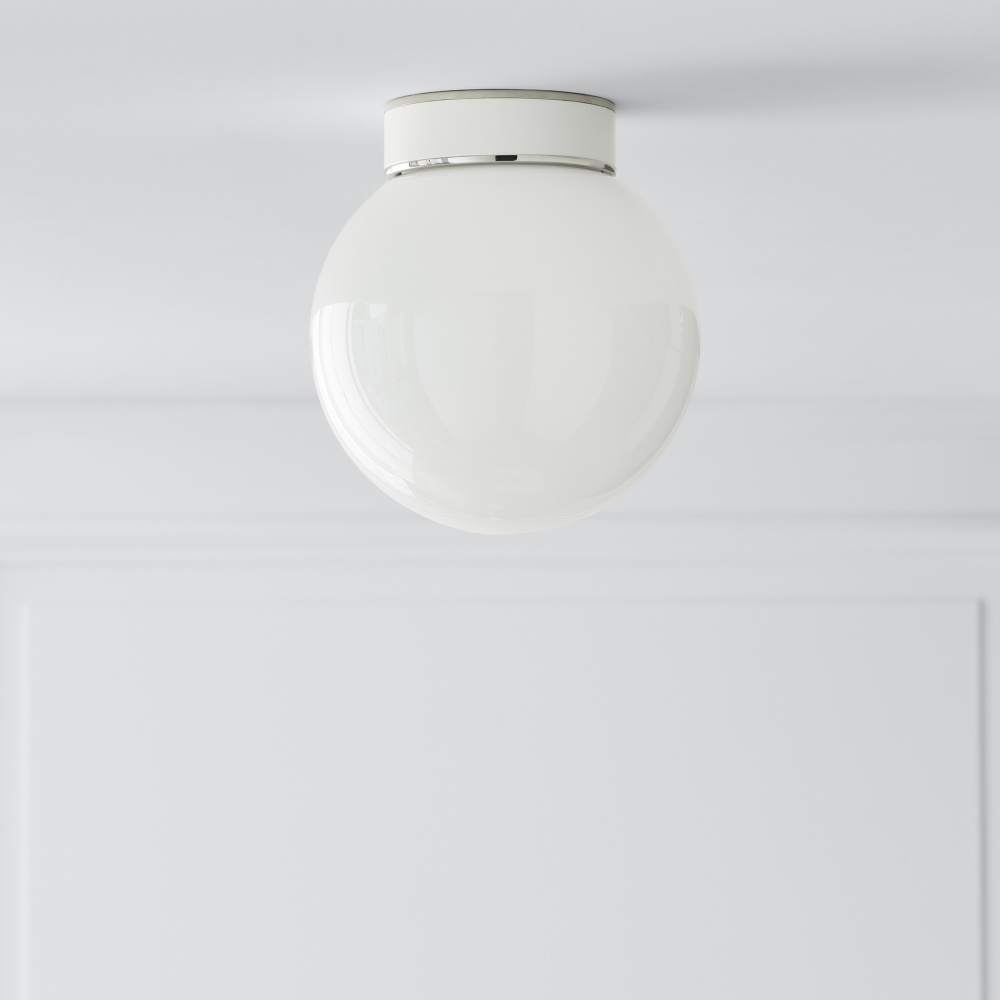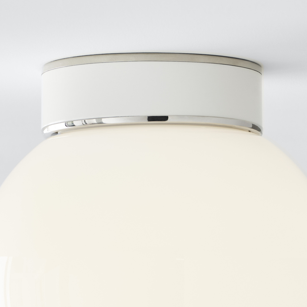 The Monroe small flush mount is inspired by graphic enameled metal jewelry and decorative accessories from kate spade with a nod to late 50s atomic era colorful designs. Monroe exhibits clean lighting profiles and dressed them up with painted sections and metal accents.