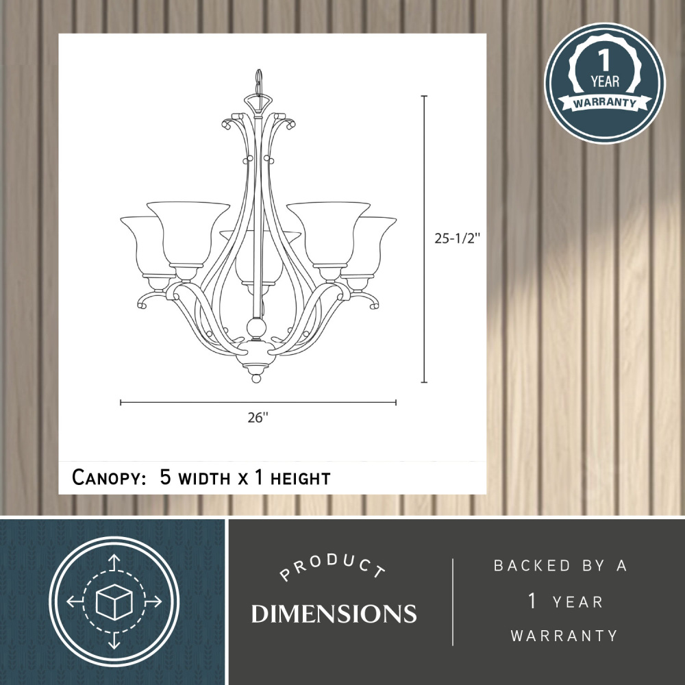 Uses 5 x 100 watt E26 medium base bulbs (not included); led compatible