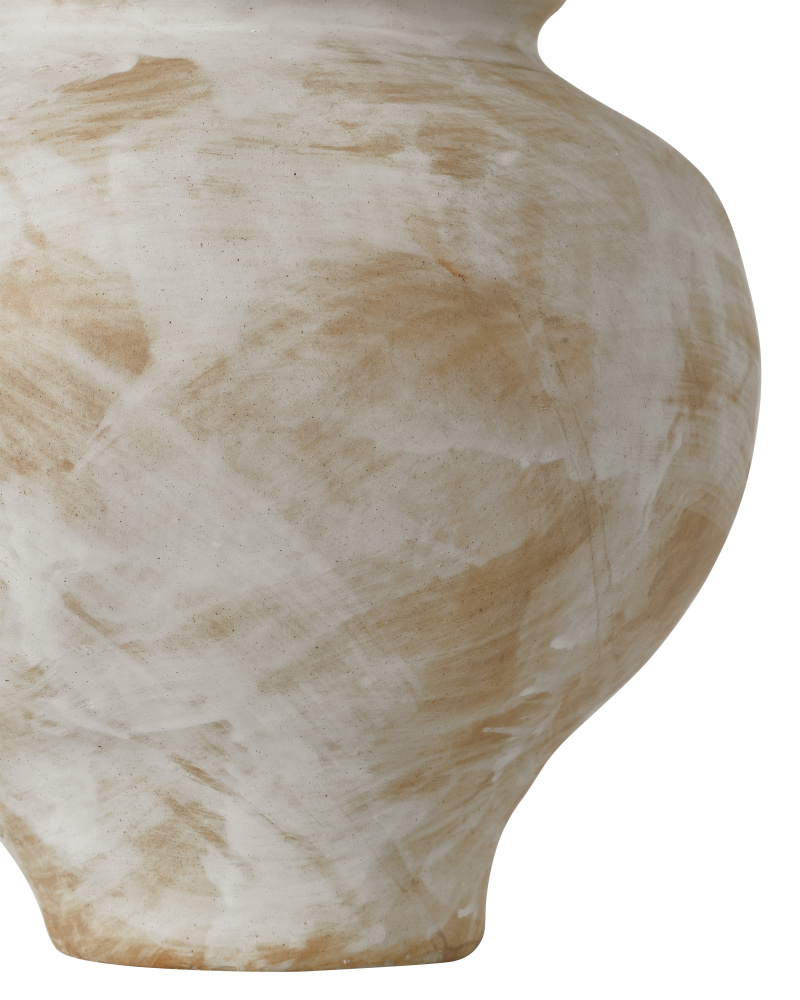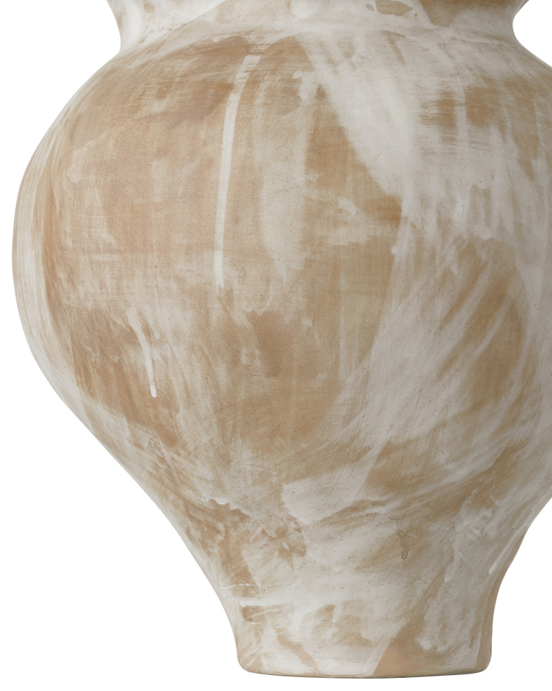 Dripping with personality, the Monte Carlo Vase Set is made of porcelain that has been hand-painted in a mix of antique white and light brown glazing. The brushstrokes of the artisans who glazed the pair of tan vases are apparent. This and the organic shape of the large mouth created when it is hand-thrown on a wheel give it a gallery-worthy feel.