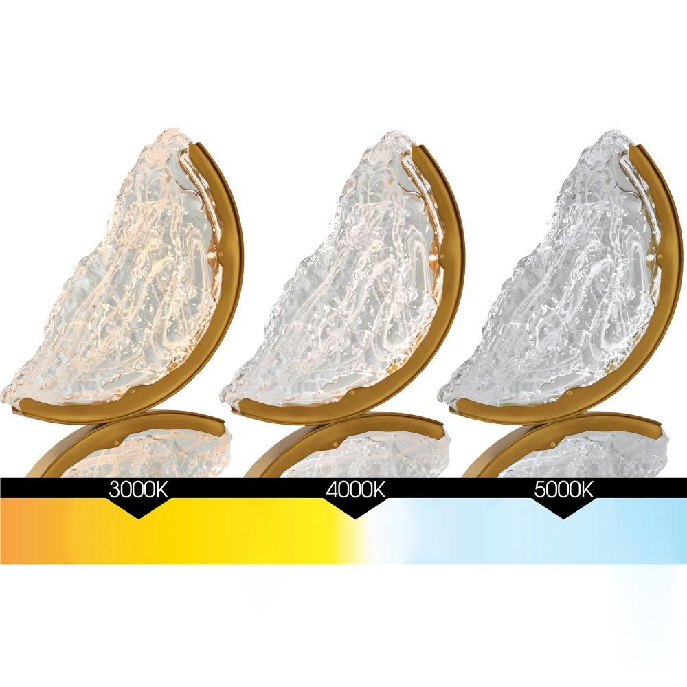 Introducing the Moon Integrated LED Wall Light, a stunning blend of contemporary design and artisanal craftsmanship. Featuring a luxurious brass finish, this wall fixture adds warmth and sophistication to any space. Its crescent-shaped panels, made from ha