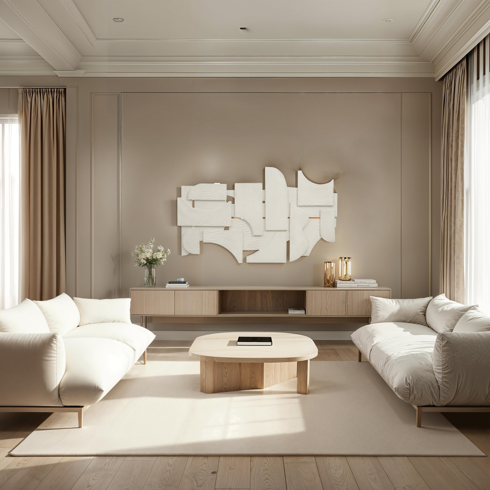 A symphony of shapes joins a richly textured matte ivory finish in this stunning piece of multi-dimensional wall art. Ideal for neutral-hued color schemes or to lighten up a moody space, it’s the perfect addition to your design project. 4-way hanging makes it possible to display it vertically or horizontally to best suit your vision.