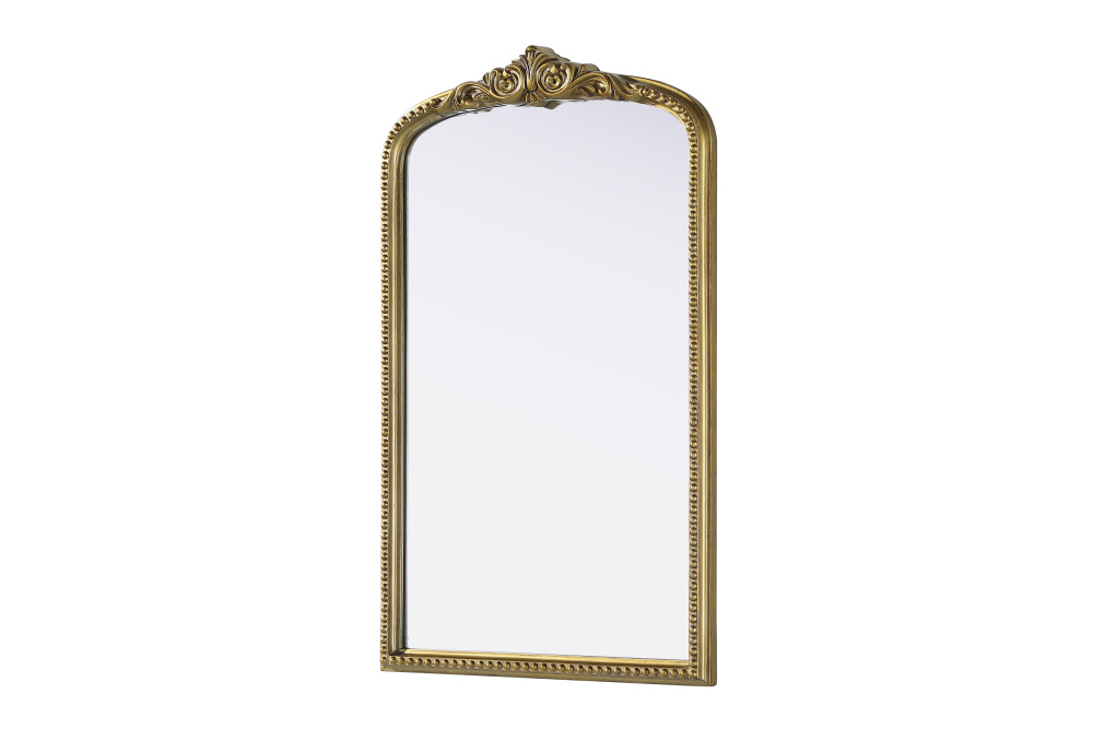 Add a touch of old-world charm to your home with this antique brass arched wall mirror, designed to bring timeless elegance and vintage character to any space. The hand-painted distressed finish gives the frame an aged, classic appeal, while the ornate crest and intricate detailing add a traditional European touch. Crafted from resin with an MDF backing board, this mirror is both lightweight and durable. Designed for vertical hanging only, it features a single metal inset hanger for easy wall mounting (hardware not included). Whether placed above a fireplace mantel, in an entryway, or as an accent piece in a living room, this mirror creates a refined focal point. Available in multiple sizes and an alternative vintage bronze finish, it complements a variety of interiors, from classic and French country to vintage-inspired spaces.