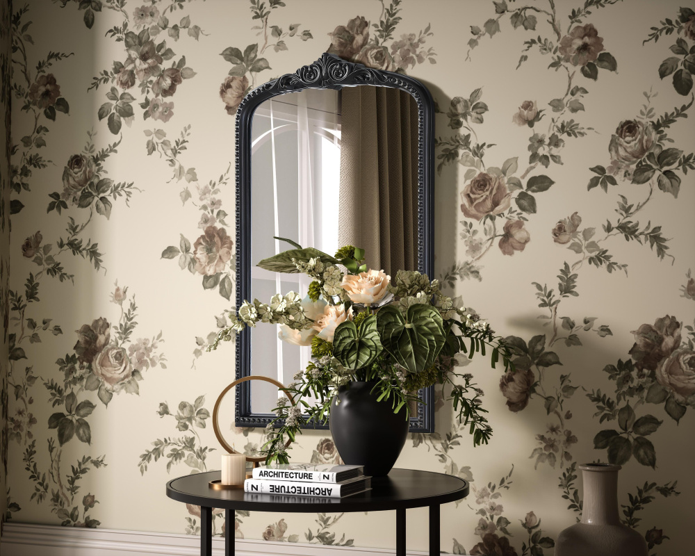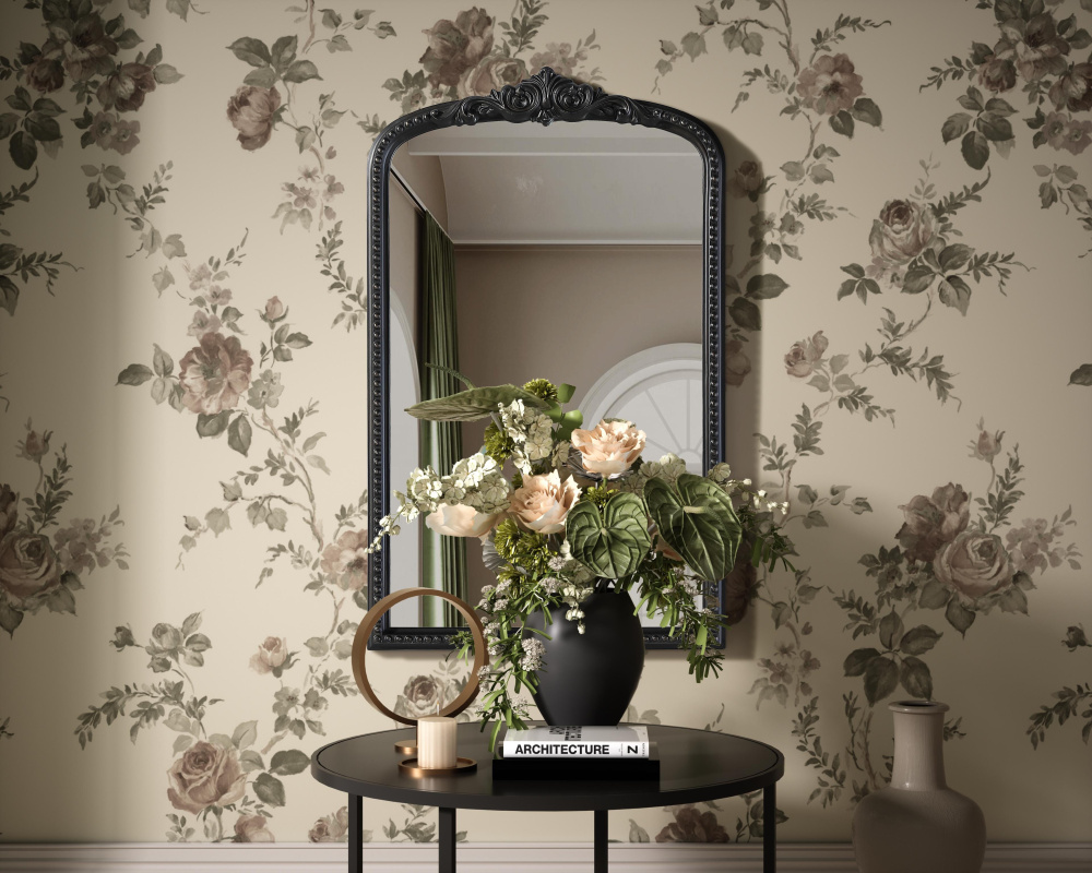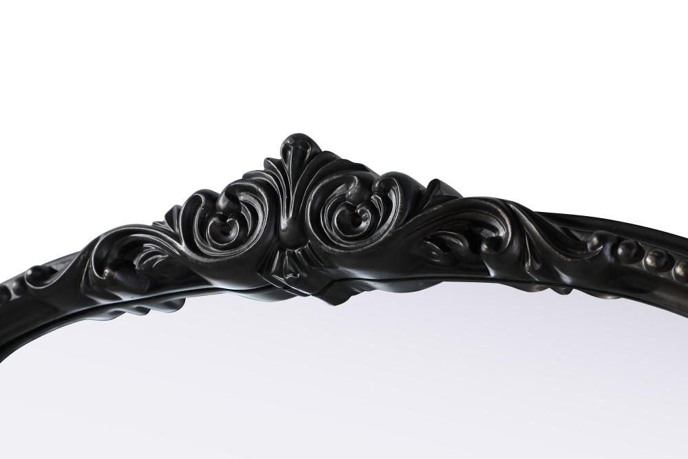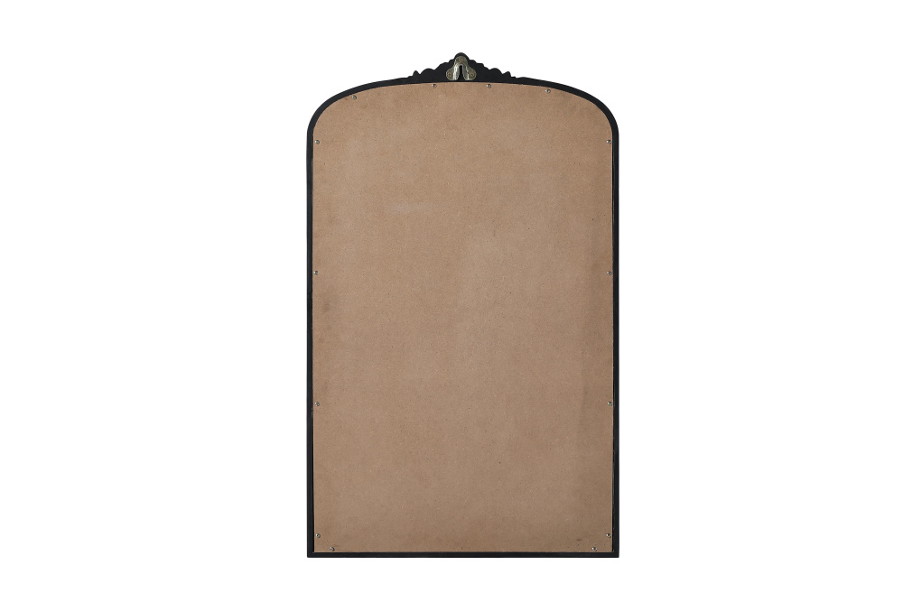 Bring classic charm and vintage character to your home with this arched wall mirror in a distressed vintage bronze finish. The hand-painted frame showcases ornate scroll and floral detailing, creating a refined, old-world aesthetic. Crafted from resin with an MDF backing board, this mirror is lightweight yet durable. Designed for vertical hanging only, it includes a metal inset hanger for easy installation (hardware not included). Whether placed above a fireplace mantel, in an entryway, or as an accent piece in a living room, this mirror enhances the space with its architectural beauty. Available in multiple sizes and an alternative antique brass finish, it is a versatile addition to classic, vintage, or French-inspired interiors.