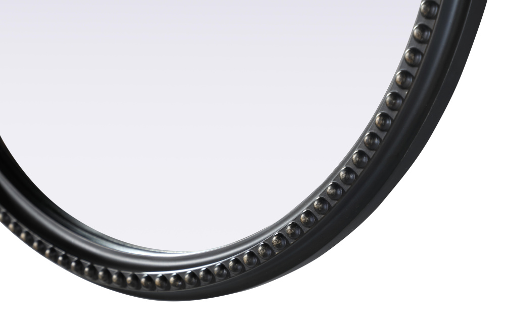 The outer edge of the mirror is lined with a delicate beaded pattern, adding texture and dimension.