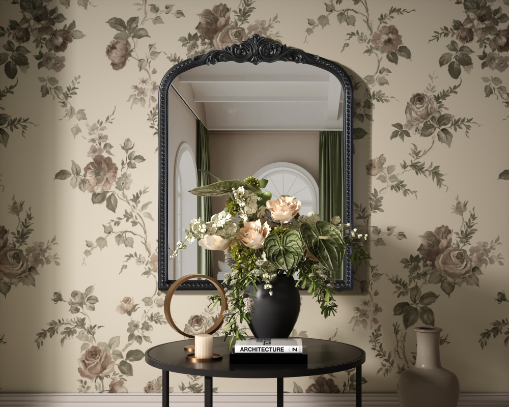 Bring classic charm and vintage character to your home with this arched wall mirror in a distressed vintage bronze finish. The hand-painted frame showcases ornate scroll and floral detailing, creating a refined, old-world aesthetic. Crafted from resin with an MDF backing board, this mirror is lightweight yet durable. Designed for vertical hanging only, it includes a metal inset hanger for easy installation (hardware not included). Whether placed above a fireplace mantel, in an entryway, or as an accent piece in a living room, this mirror enhances the space with its architectural beauty. Available in multiple sizes and an alternative antique brass finish, it is a versatile addition to classic, vintage, or French-inspired interiors.
