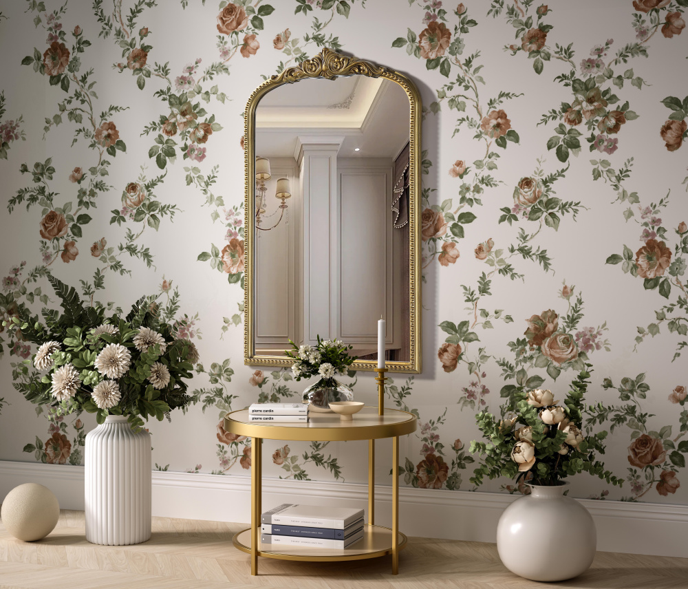 Add a touch of old-world charm to your home with this antique brass arched wall mirror, designed to bring timeless elegance and vintage character to any space. The hand-painted distressed finish gives the frame an aged, classic appeal, while the ornate crest and intricate detailing add a traditional European touch. Crafted from resin with an MDF backing board, this mirror is both lightweight and durable. Designed for vertical hanging only, it features a single metal inset hanger for easy wall mounting (hardware not included). Whether placed above a fireplace mantel, in an entryway, or as an accent piece in a living room, this mirror creates a refined focal point. Available in multiple sizes and an alternative vintage bronze finish, it complements a variety of interiors, from classic and French country to vintage-inspired spaces.