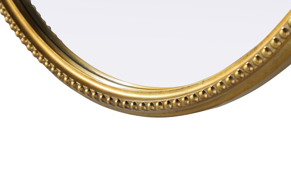The outer edge of the mirror is lined with a delicate beaded pattern, adding texture and dimension.