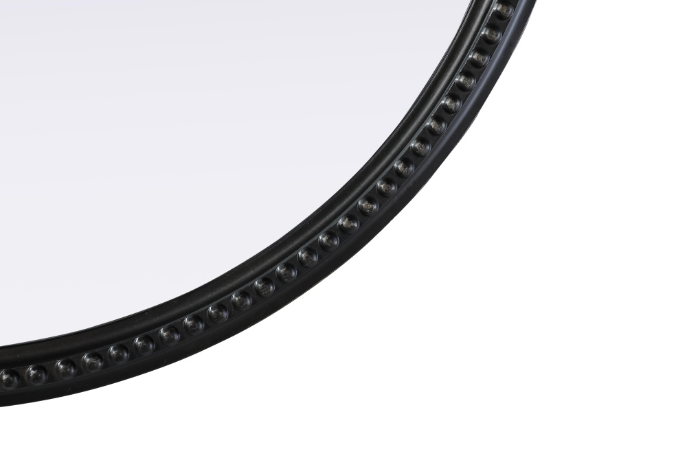 The outer edge of the mirror is lined with a delicate beaded pattern, adding texture and dimension.