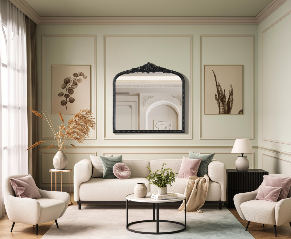 The mirror features a softly curved arch at the top, adding a refined and timeless touch to any space.