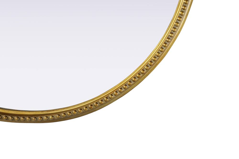 The outer edge of the mirror is lined with a delicate beaded pattern, adding texture and dimension.
