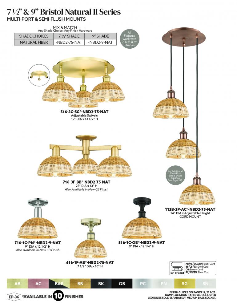 Natural Ballston Dome - 3 Light - 6 inch - Antique Brass - Natural Fiber Basketweave - Semi-Flush Mount