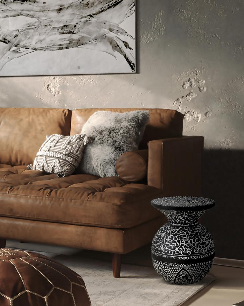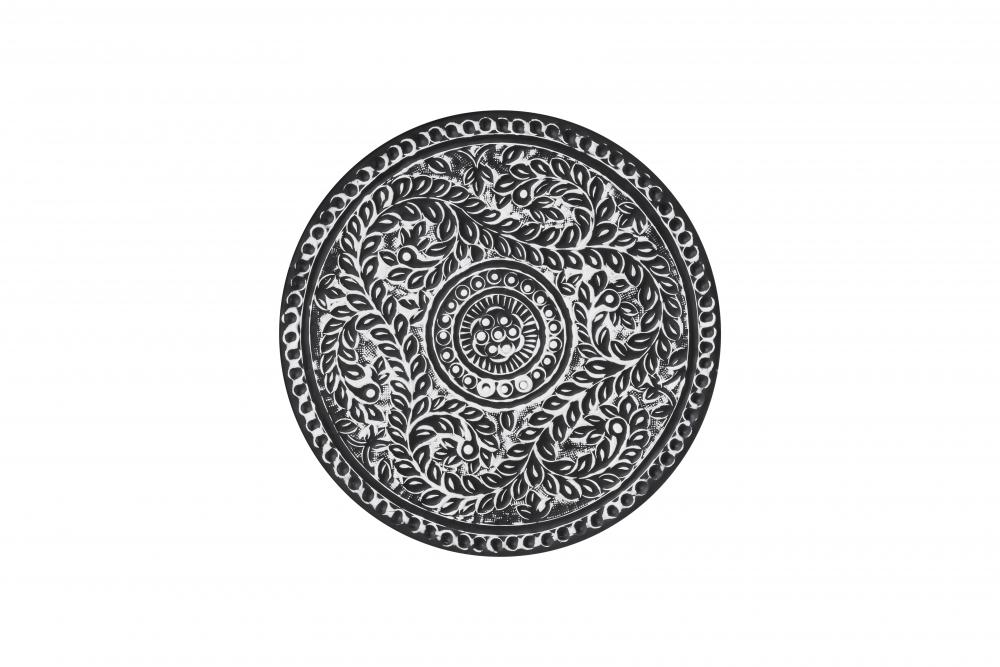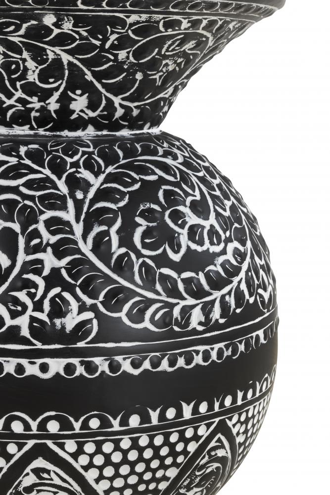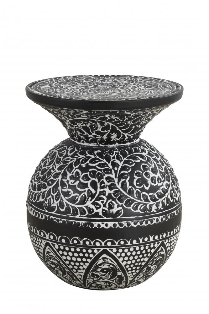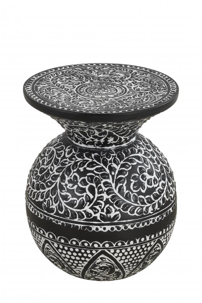 Intricate Vintage Design: The NAVI side table features detailed white antique patterns on a rich black background, showcasing intricate craftsmanship and adding vintage elegance to any room.