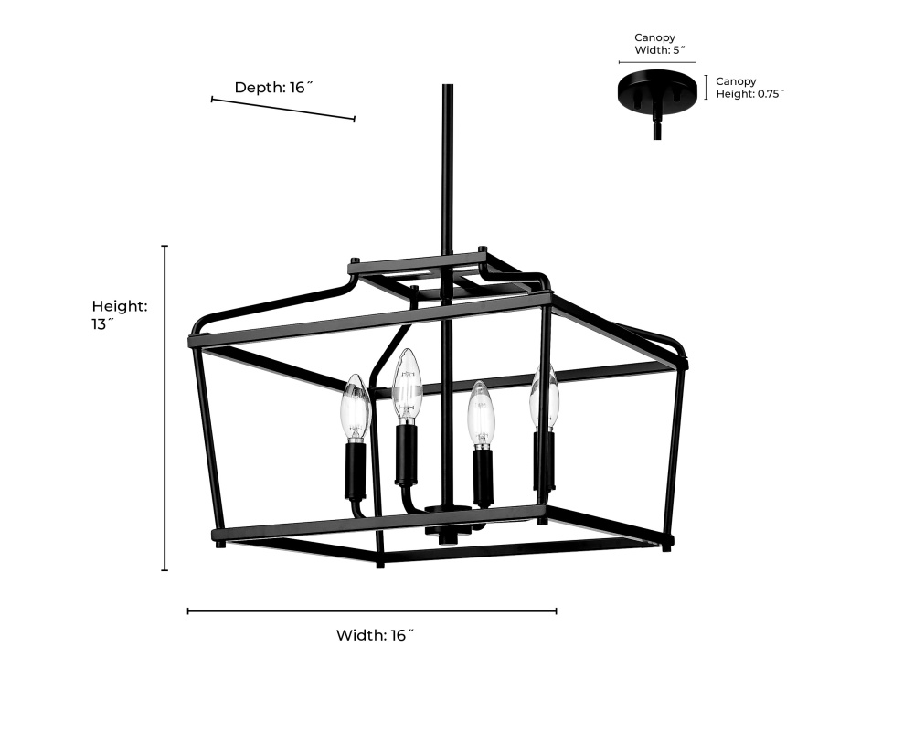 Nellita 16" Wide 4-Light Pendant - Matte Black