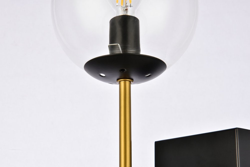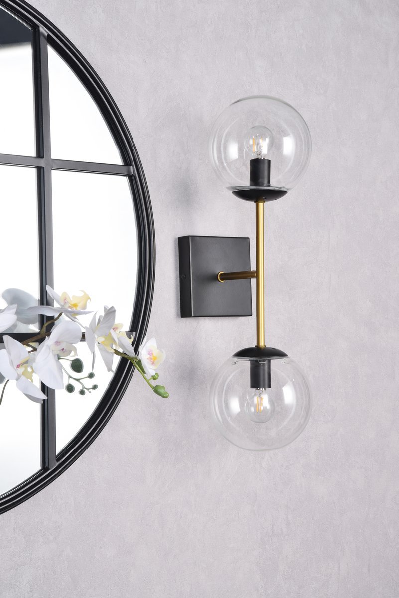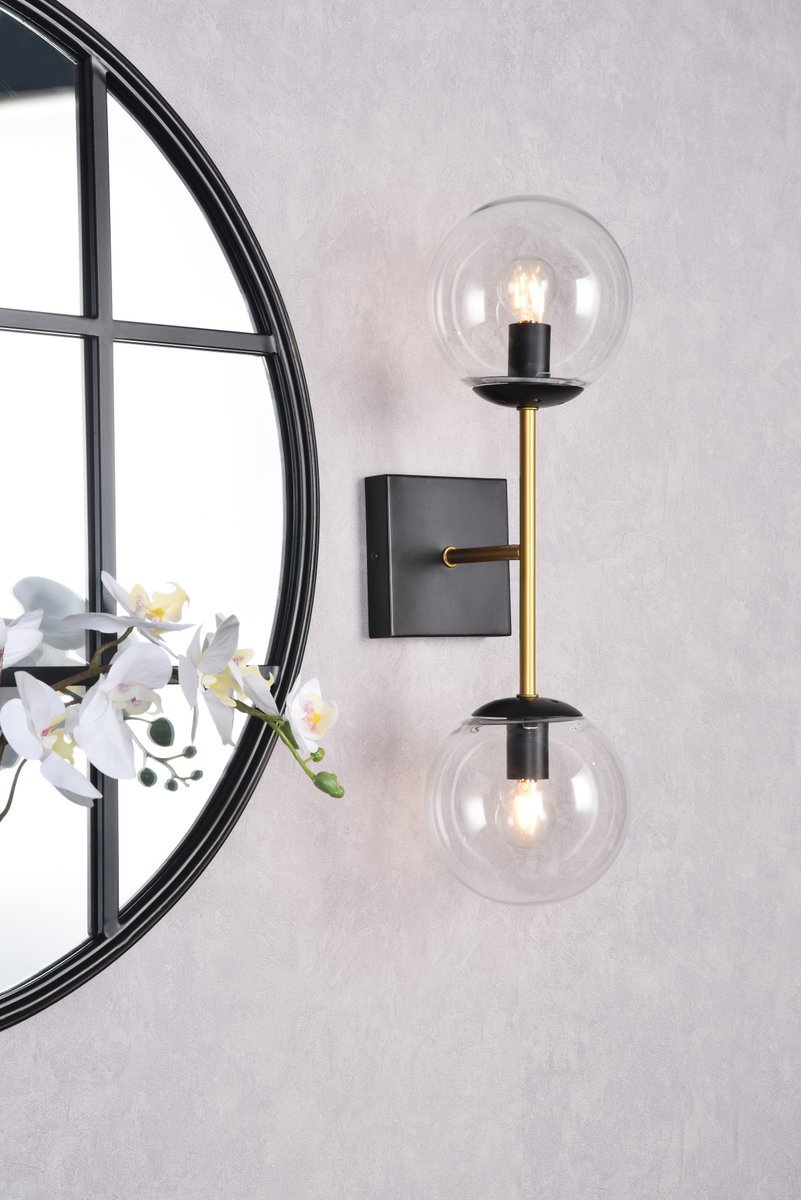 Neri 2 lights black and brass and clear glass wall sconce