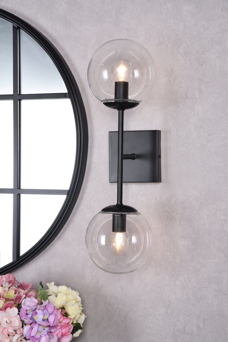 The Neri Collection wall sconce is a distinctive light that will pop in your room. The globe shade and sleek straight arm creates a clean form. The two bulbs allow themselves to brighten up the room in both directions. Available in a black and/or brass finish, and a clear or white shade, let this wall lamp illuminate your room. You can choose whether to have one or two lights. This product is dimmable and requires one or two E12 lamps. Light bulbs not included.