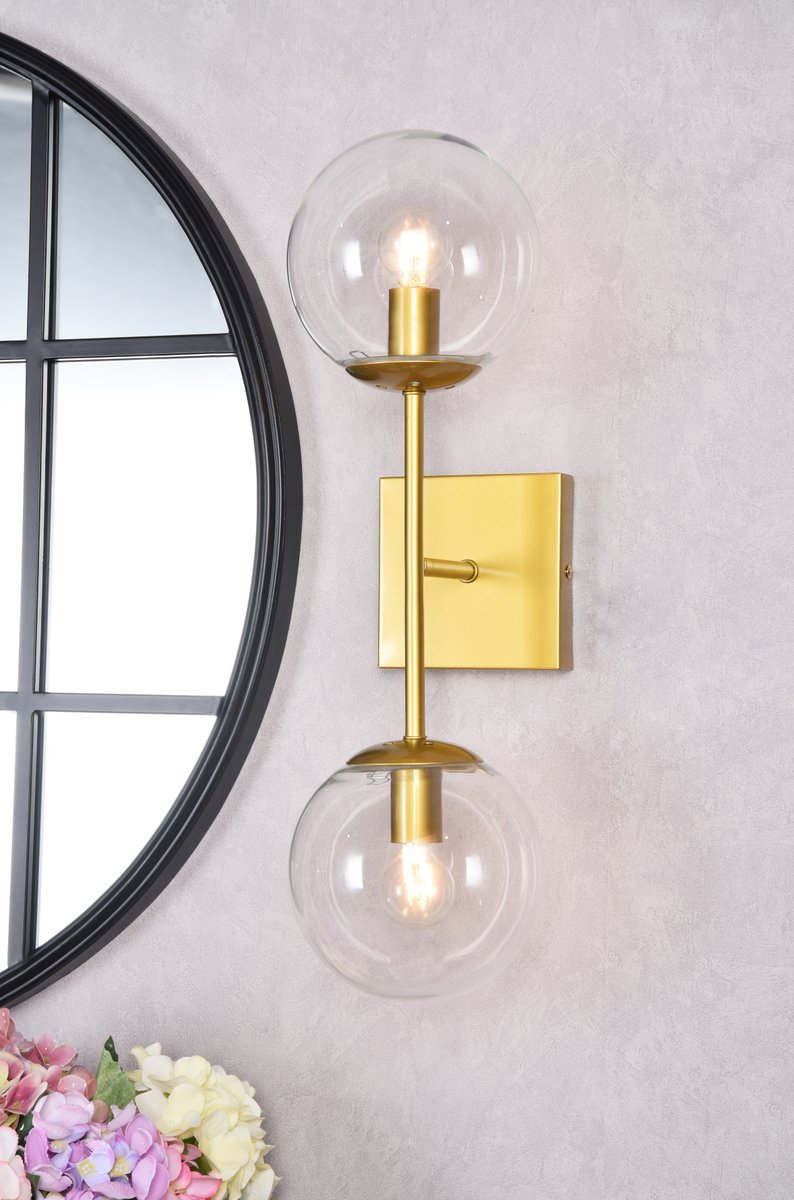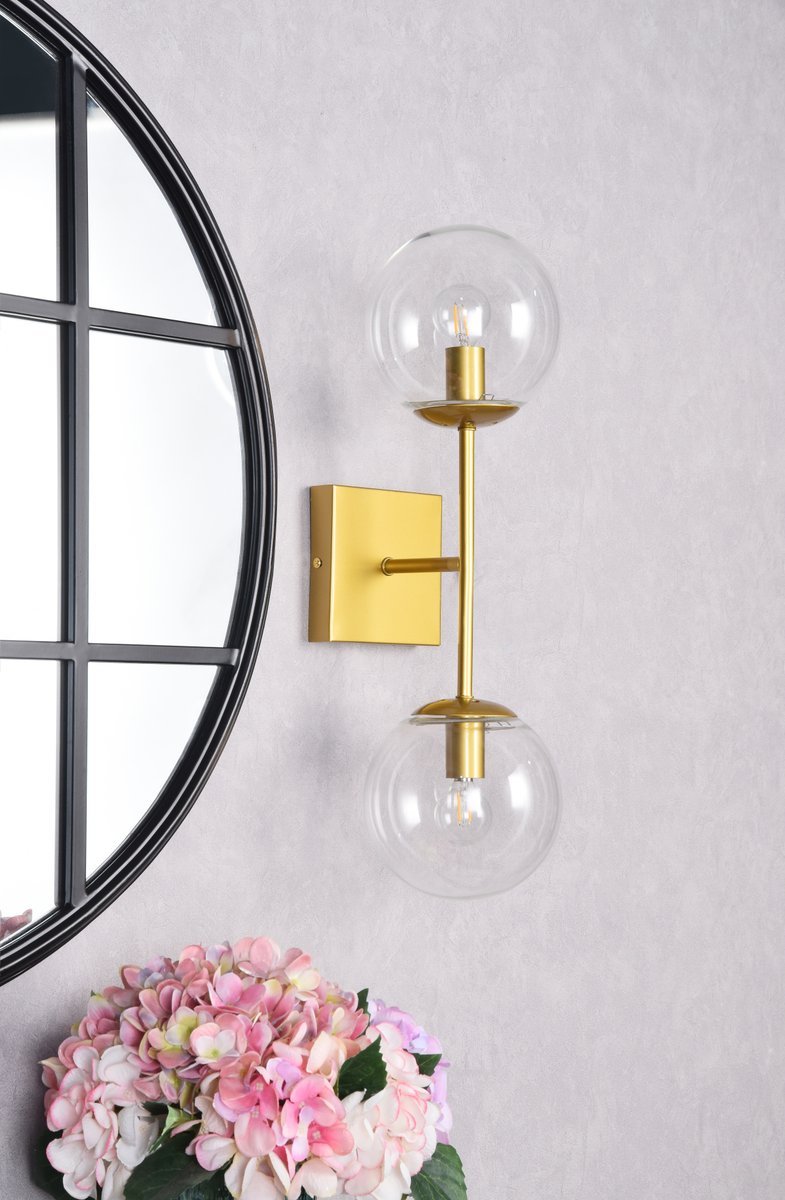 The Neri Collection wall sconce is a distinctive light that will pop in your room. The globe shade and sleek straight arm creates a clean form. The two bulbs allow themselves to brighten up the room in both directions. Available in a black and/or brass finish, and a clear or white shade, let this wall lamp illuminate your room. You can choose whether to have one or two lights. This product is dimmable and requires one or two E12 lamps. Light bulbs not included.