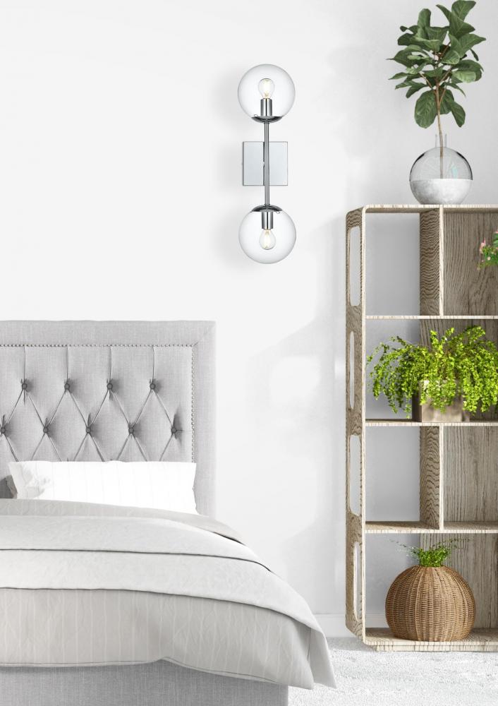 The Neri Collection wall sconce is a distinctive light that will pop in your room. The globe shade and sleek straight arm creates a clean form. The two bulbs allow themselves to brighten up the room in both directions. Available in a satin gold, chrome, black and/or brass finish, and a clear shade, let this wall lamp illuminate your room. You can choose whether to have one or two lights. This product is dimmable and requires one or two E12 lamps. Light bulbs not included.