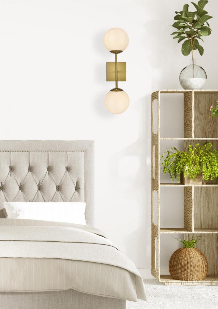 The Neri Collection wall sconce is a distinctive light that will pop in your room. The globe shade and sleek straight arm creates a clean form. The two bulbs allow themselves to brighten up the room in both directions. Available in a satin gold, chrome, black and/or brass finish, and a frosted white shade, let this wall lamp illuminate your room. You can choose whether to have one or two lights. This product is dimmable and requires one or two E12 lamps. Light bulbs not included.