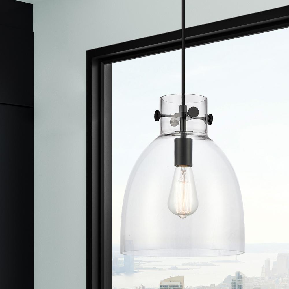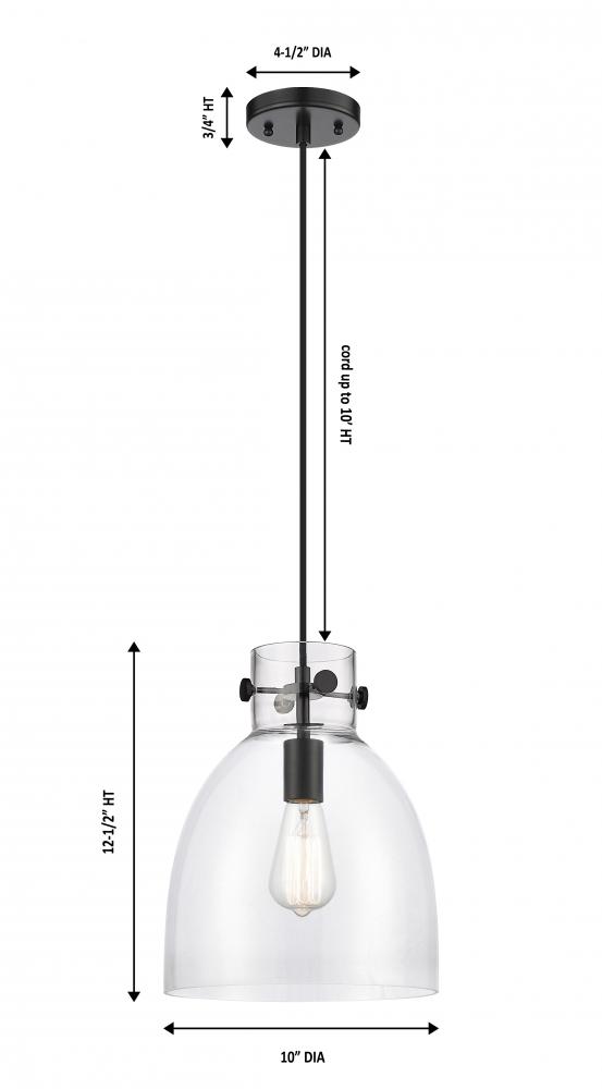 Newton Bell - 1 Light - 10 inch - Matte Black - Clear Shade - Cord hung - Pendant
