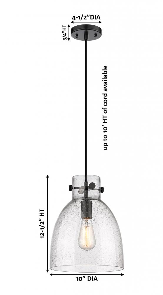 Newton Bell - 1 Light - 10 inch - Matte Black - Seedy Shade - Cord hung - Pendant