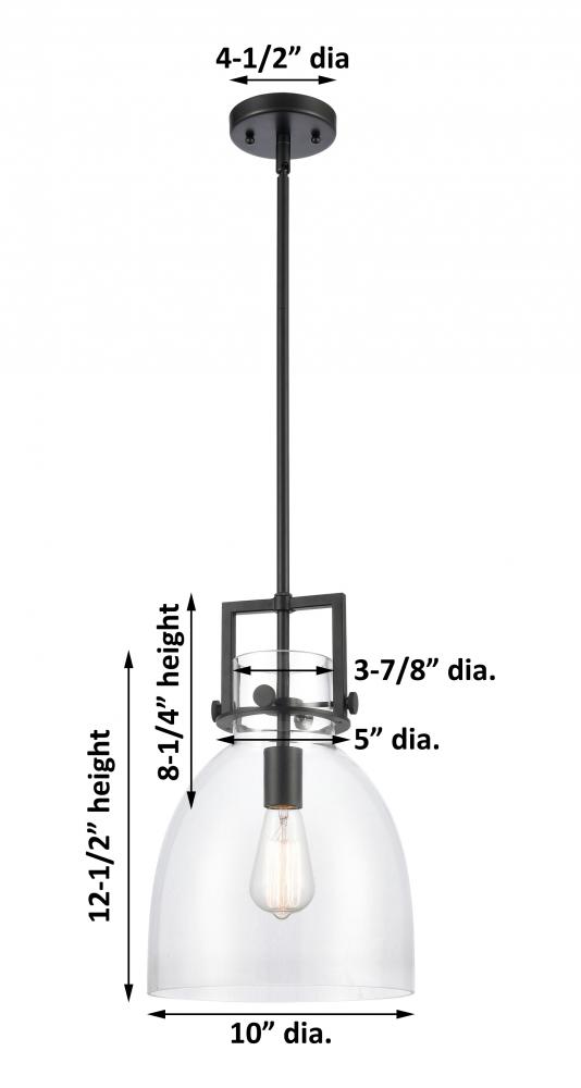 Newton Bell - 1 Light - 10 inch - Matte Black - Clear Shade - Mini Pendant