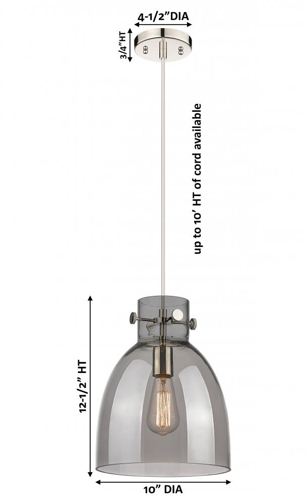 Newton Bell - 1 Light - 10 inch - Polished Nickel - Light Smoke Shade - Cord hung - Pendant
