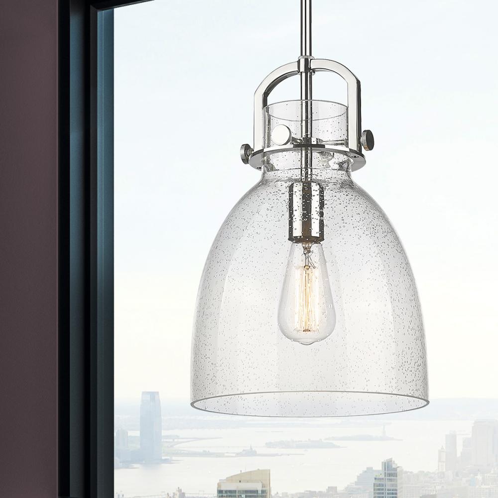 Newton Bell - 1 Light - 10 inch - Polished Nickel - Seedy Shade - Mini Pendant