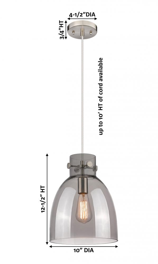 Newton Bell - 1 Light - 10 inch - Satin Nickel - Light Smoke Shade - Cord hung - Pendant