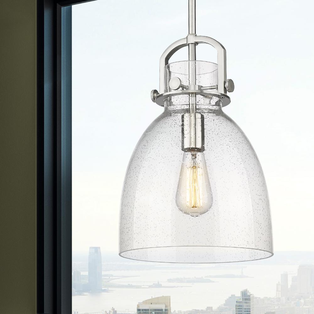 Newton Bell - 1 Light - 10 inch - Satin Nickel - Seedy Shade - Mini Pendant