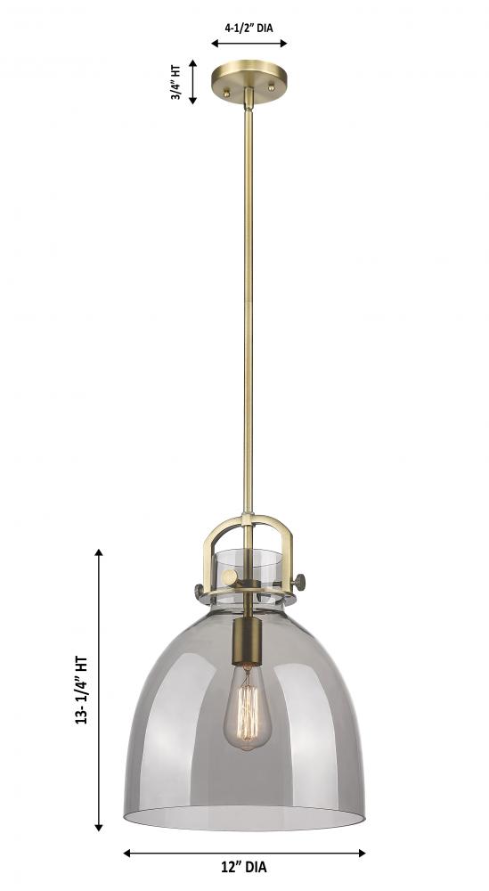 Newton Bell - 1 Light - 12 inch - Brushed Brass - Light Smoke Shade - Mini Pendant