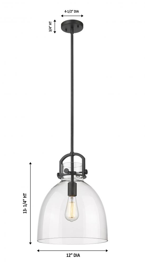 Newton Bell - 1 Light - 12 inch - Matte Black - Clear Shade - Mini Pendant