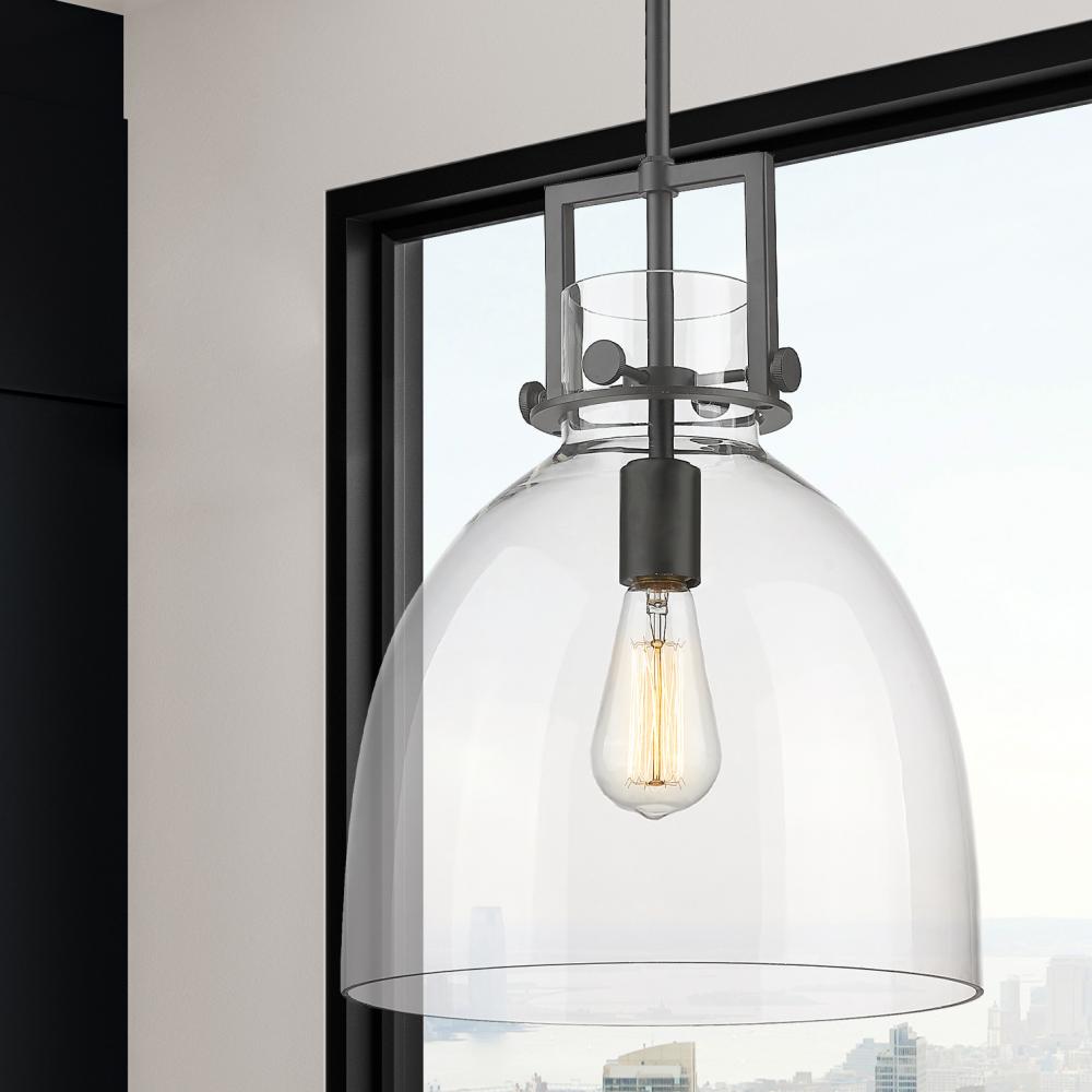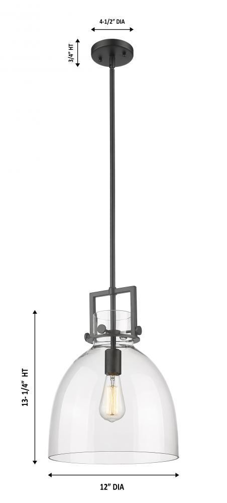 Newton Bell - 1 Light - 12 inch - Matte Black - Clear Shade - Mini Pendant