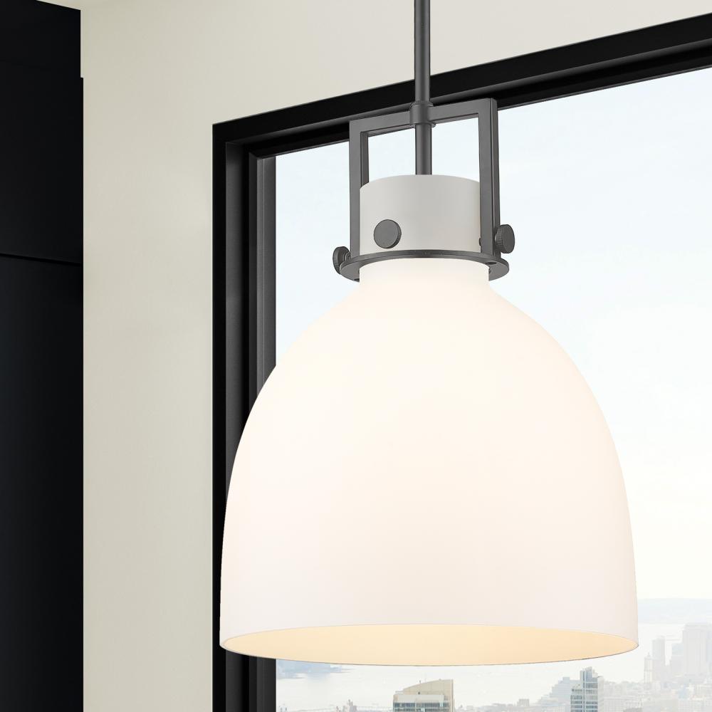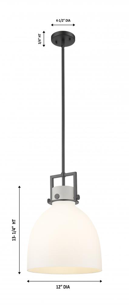 Newton Bell - 1 Light - 12 inch - Matte Black - White Shade - Mini Pendant