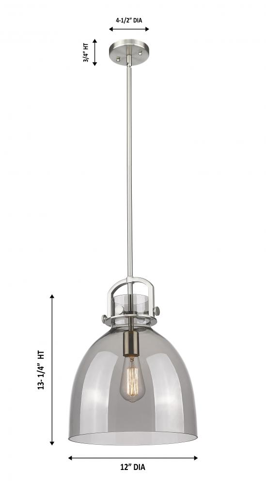 Newton Bell - 1 Light - 12 inch - Satin Nickel - Light Smoke Shade - Mini Pendant