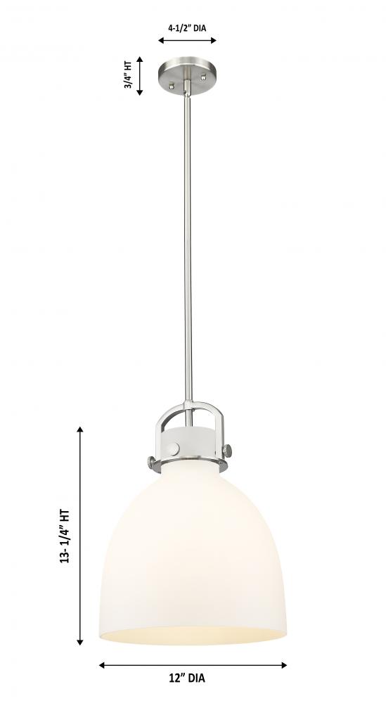 Newton Bell - 1 Light - 12 inch - Satin Nickel - White Shade - Mini Pendant