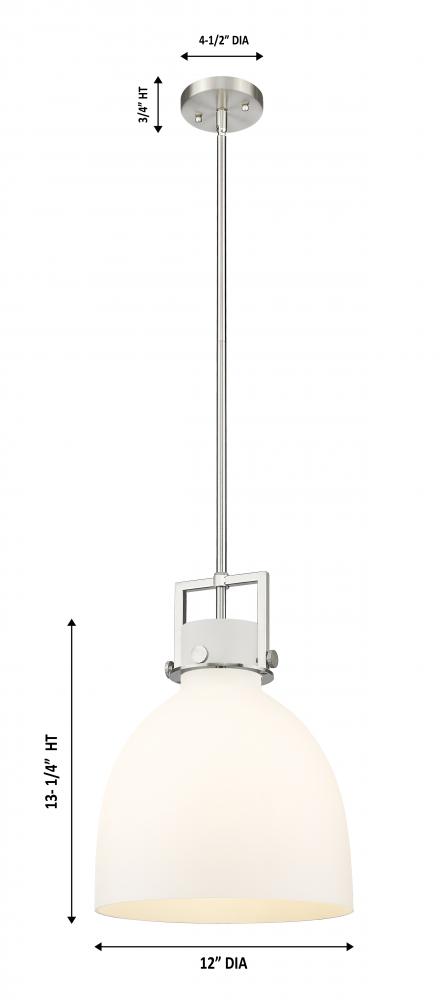 Newton Bell - 1 Light - 12 inch - Satin Nickel - White Shade - Mini Pendant