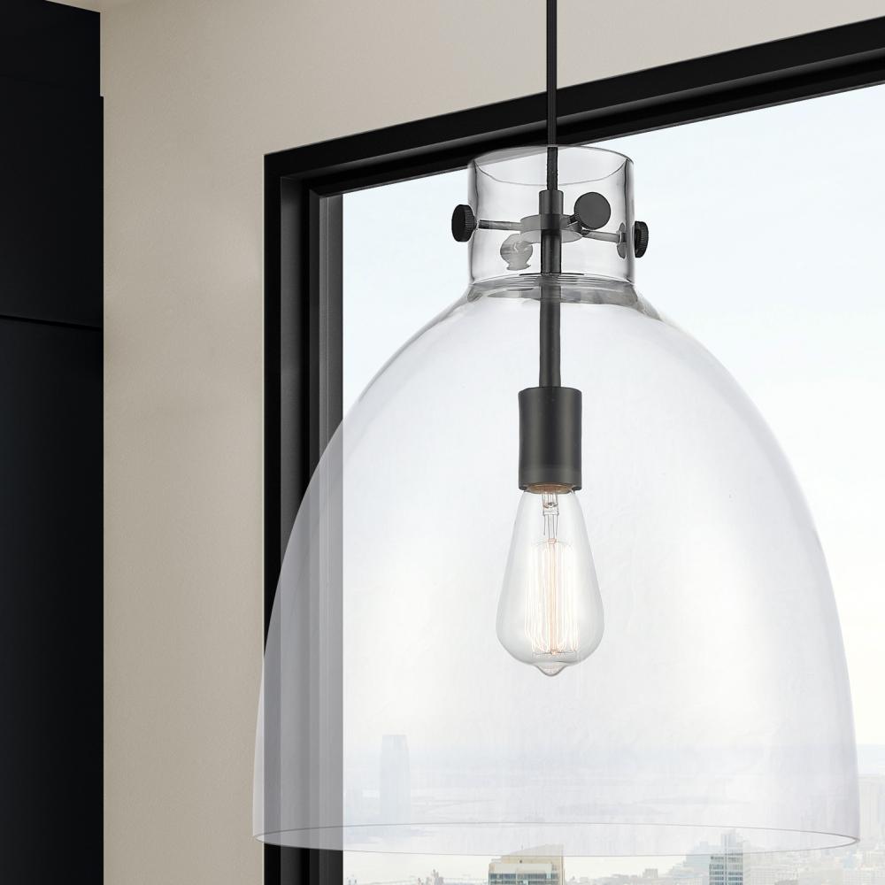 Newton Bell - 1 Light - 14 inch - Matte Black - Clear Shade - Cord hung - Pendant