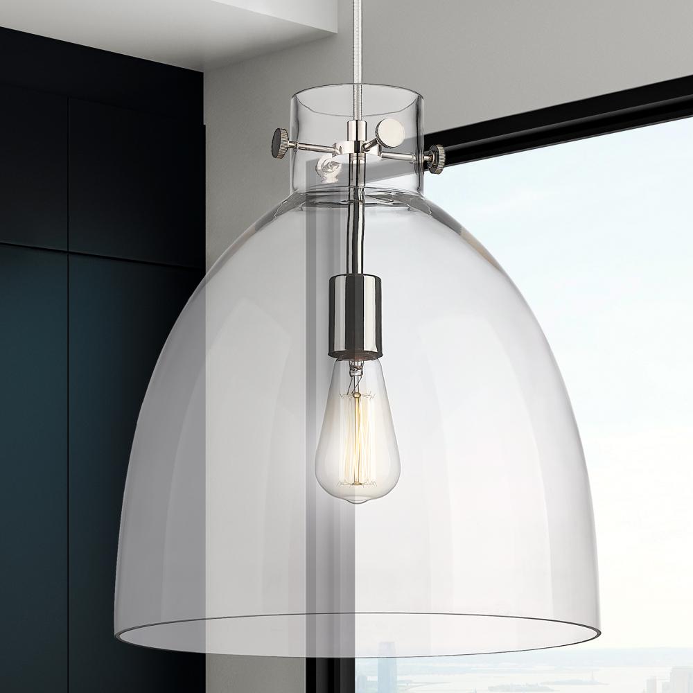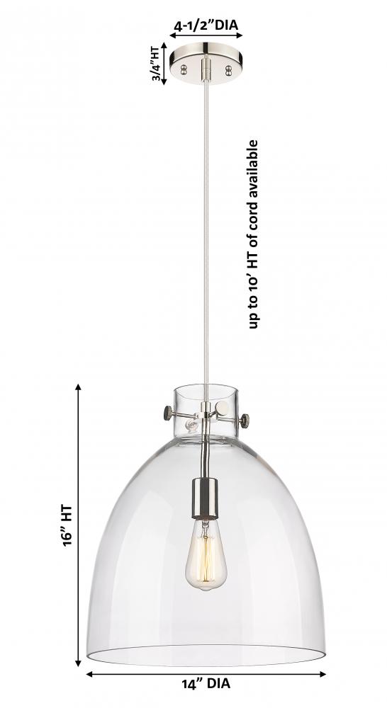 Newton Bell - 1 Light - 14 inch - Polished Nickel - Clear Shade - Cord hung - Pendant