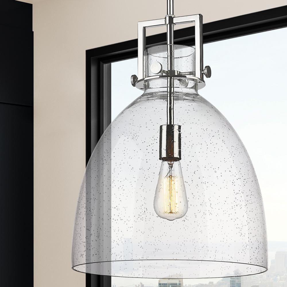 The Newton Bell is a modern industrial collection that incorporates exceptional architectural details and classic bell shaped shade. The delicately curved glass or metal shade complements the clean lines of this restoration inspired line of fixtures. The N
